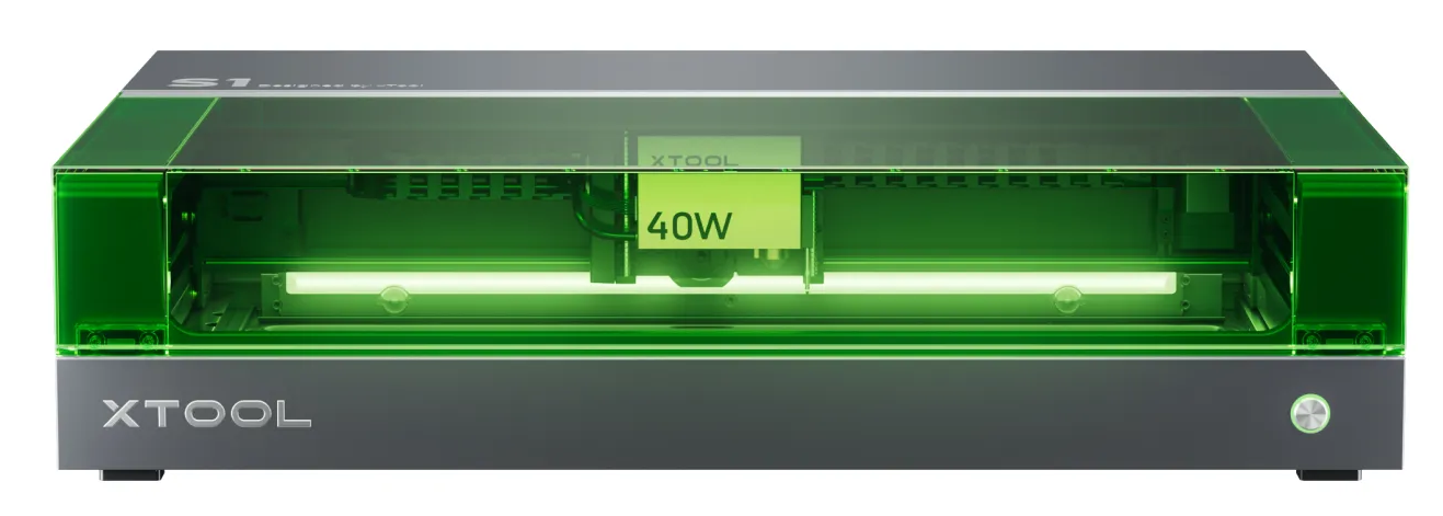 xTool S1 40w diode laser. Max output 40w. Max working area 498 x 319mm.